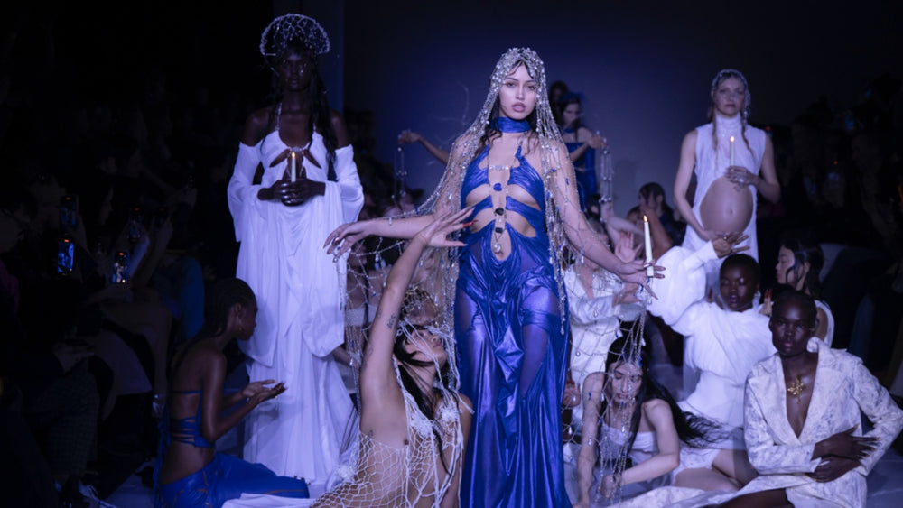 The Venus Crystal Headdress Shawl is meticulously hand-crafted with Silver Chain in a hooded design to be worn over the head and shoulders, with chainmail cascading down the back, adorned with raw pearl droplet accents and raw Clear Quarts healing crystals, evoking the sensuality of goddess Venus, crystallised and emerging from the Sea.