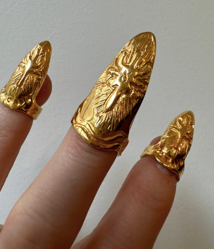 Hand carved Venus Shell inspired Nail Guard Rings, to be worn as decoration and armour in two sizes, Small and Large - the rings are adjustable when worn to fit to your finger.