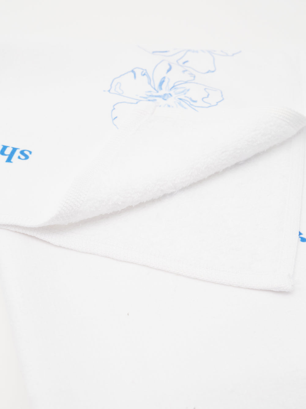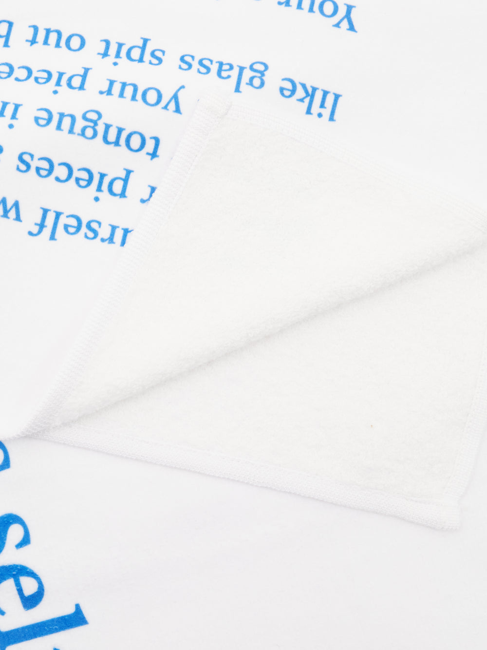The DI PETSA Wet Script towel, is made from organic cotton and features stage notes and scripture from the Wetness Performances.