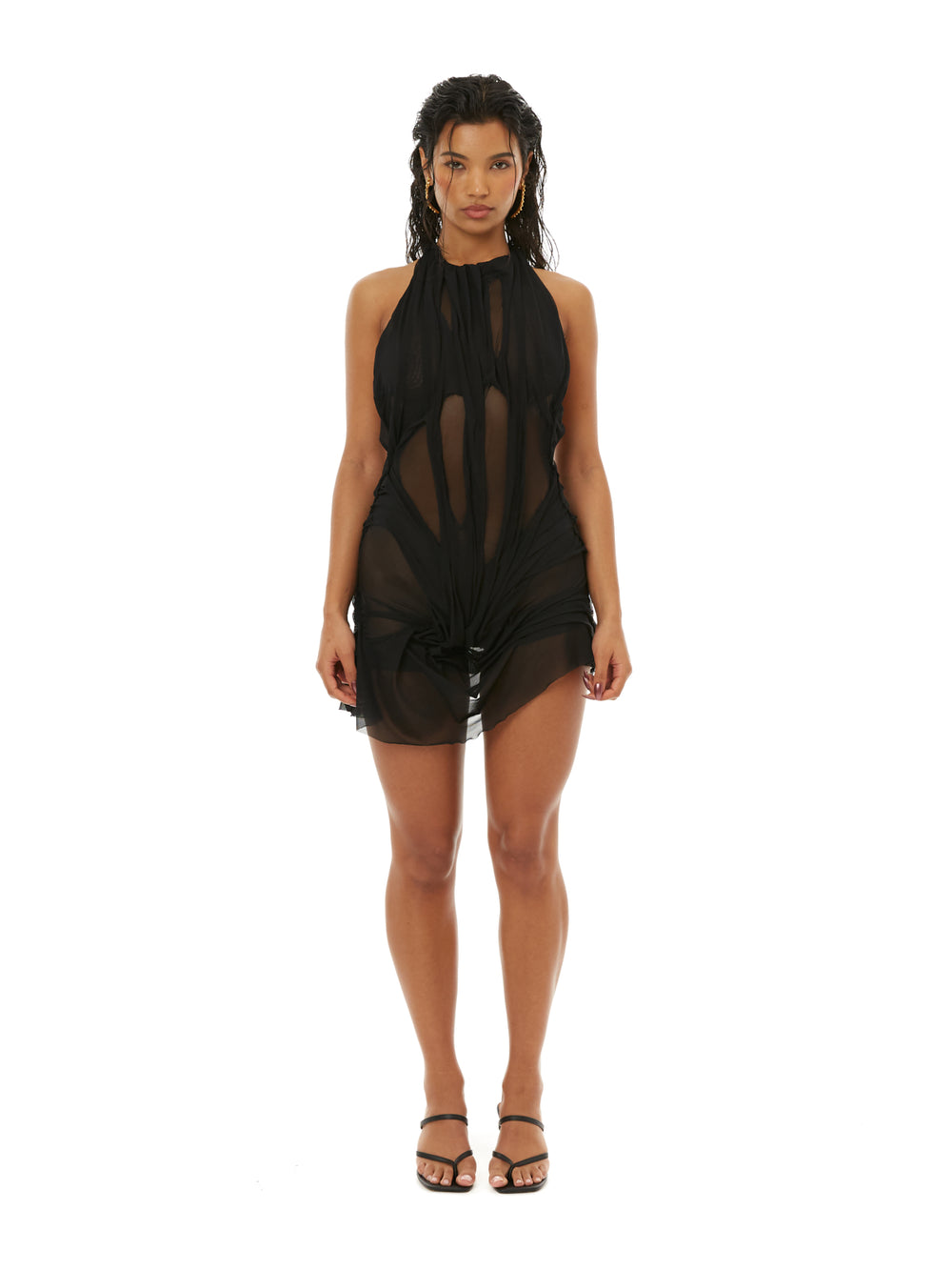 The Wetlook mini dress is a couture hand-crafted piece, intricately draped and sewn to create the ethereal illusion of water rippling across the body, as seen on muses Bella Hadid, Megan Fox and Candice Swanepoel.