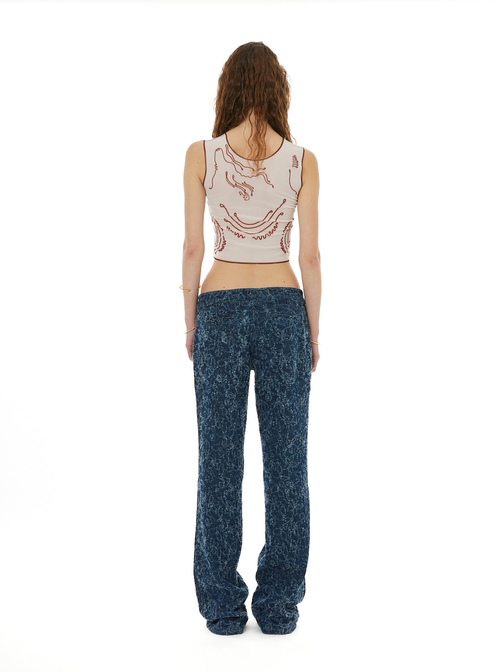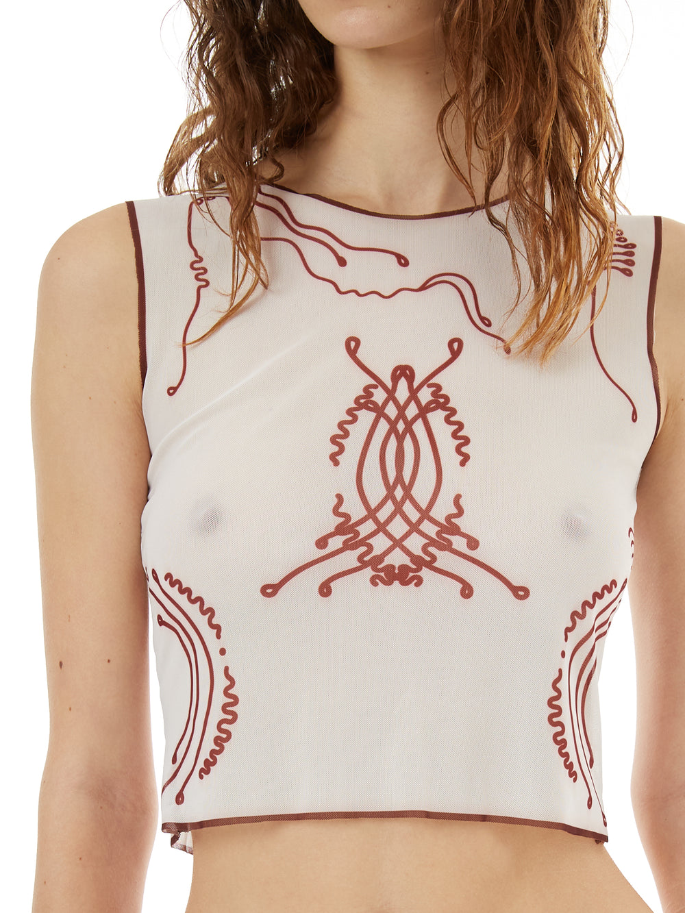 The shape of Venus body contour print top, made from stretch Recycled mesh fabric.
