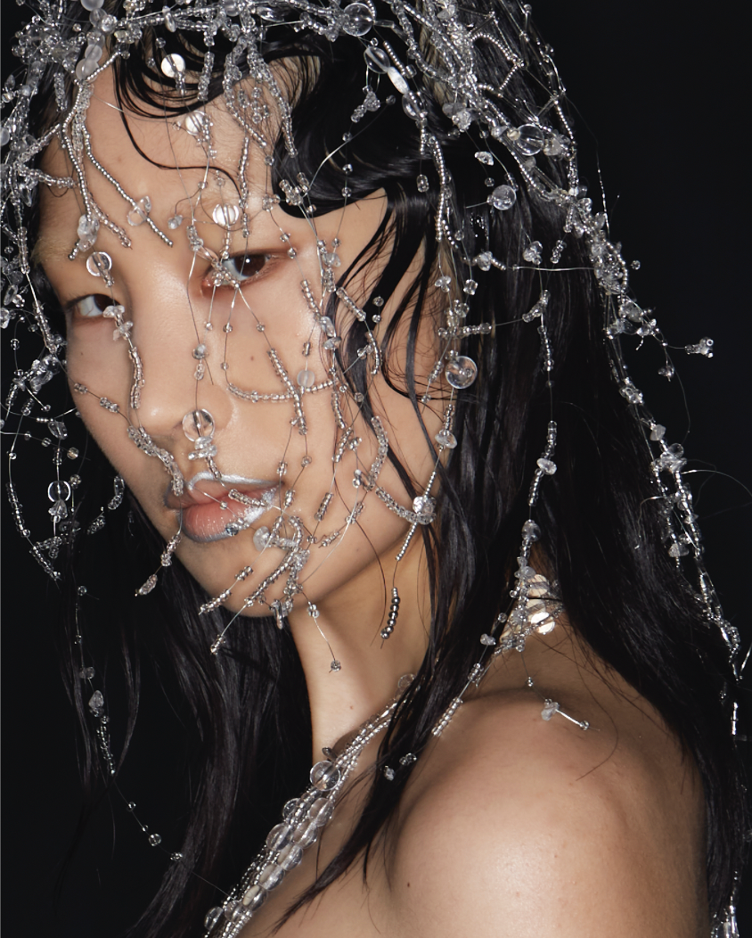 The Clear Quartz headpiece is expertly handcrafted, with individual strands of raw clear Quartz healing crystals and glass beads creating the illusion of water droplets falling around the face. We can customise the design, if you prefer to have less crystals around the front of the face, and we can customise the length of the headpiece at the back of the head.