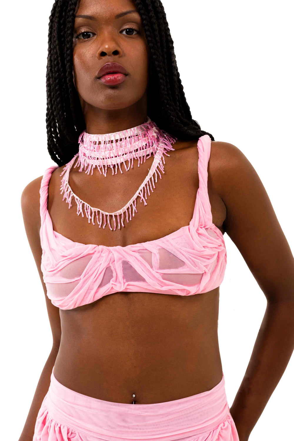 The Wetlook bra is a couture hand-crafted piece, intricately draped and sewn to create the ethereal illusion of Water rippling across the body.