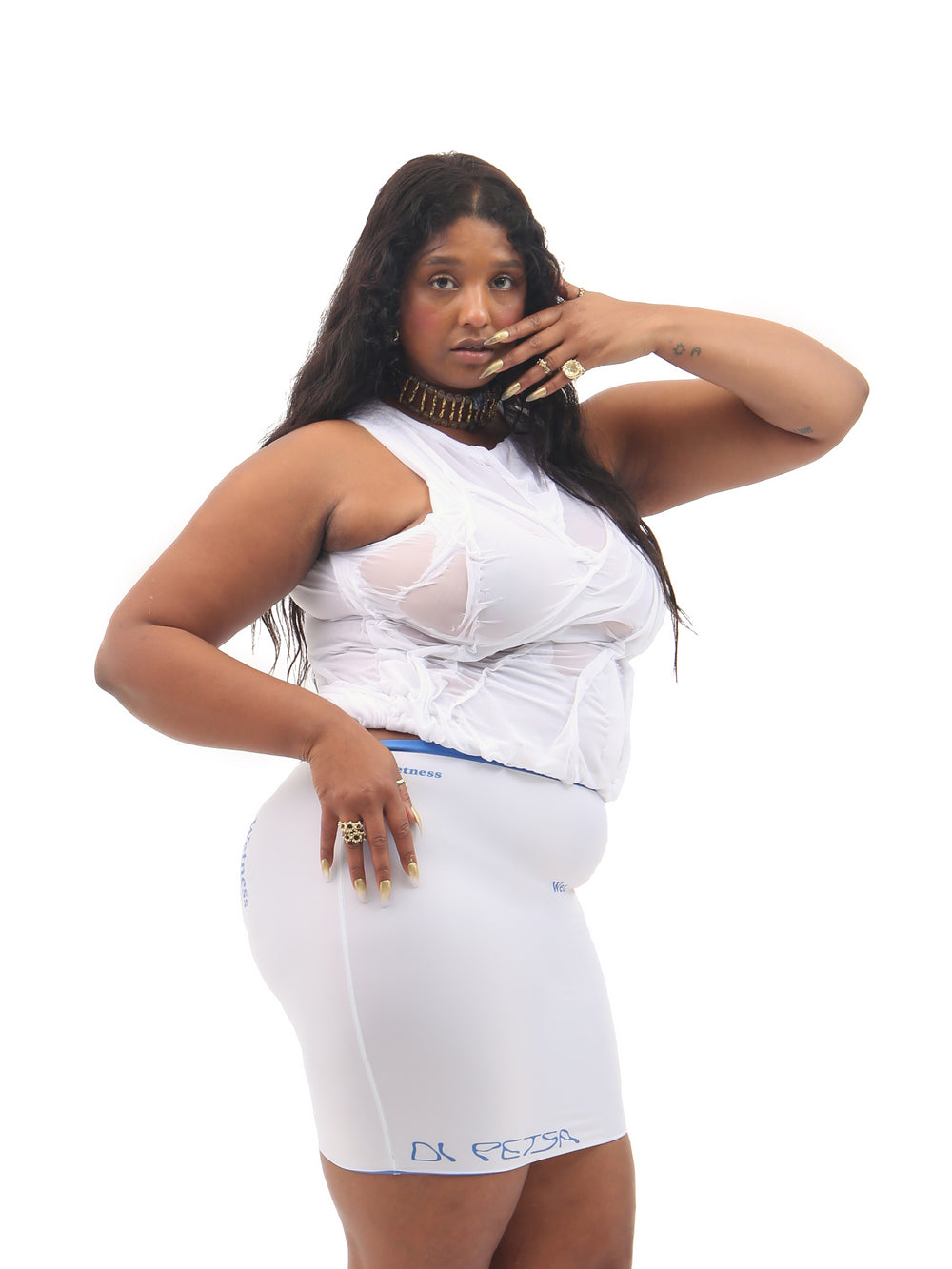 The Wetlook Top is a couture hand-crafted piece, intricately draped and sewn to create the ethereal illusion of water rippling across the body.